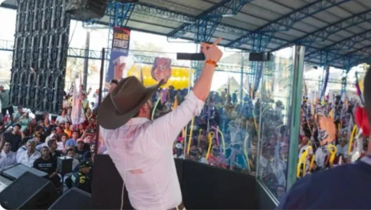 Por eso este miércoles ante una multitud que lo acompañaba en el bar Capachos de Villavicencio, el candidato presidencial Abelardo de la Espriella estrenó un atril blindado como elemento para prevenir un atentado contra su vida.